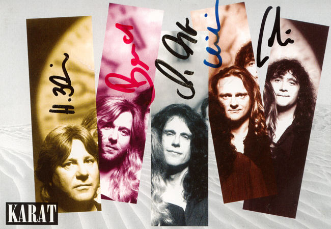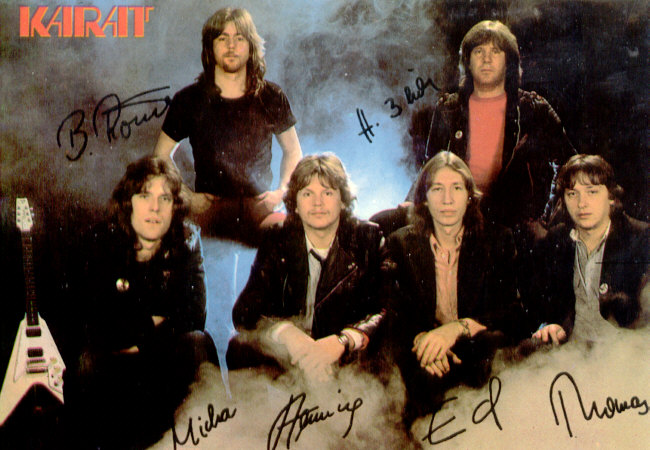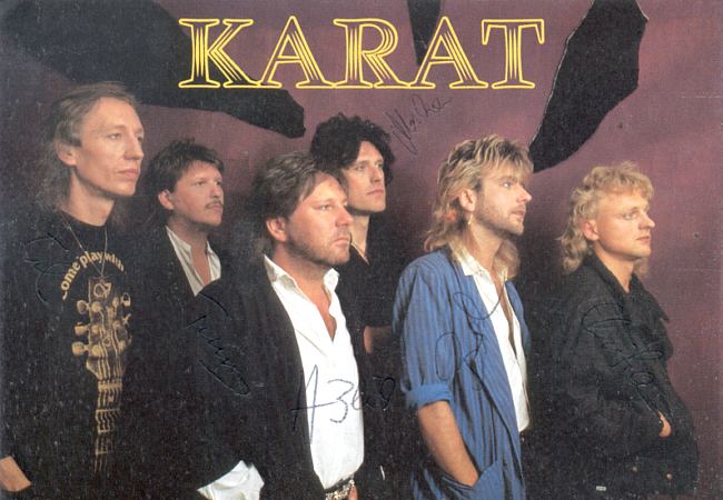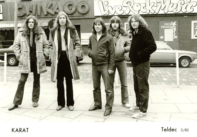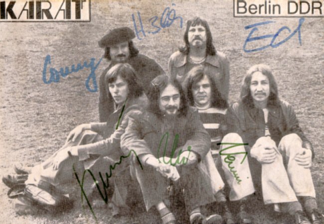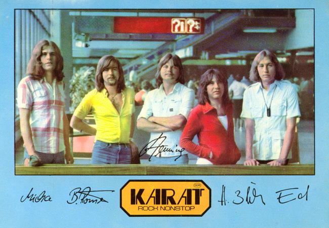 1975 - Bassist Henning Protzmann (Panta Rhei) und Gitarrist/Sänger Ulrich Pexa (Frank Schöbel) beschließen, eine eigene Gruppe aus der Taufe zu heben. Christian Steyer (keyboards), Schlagzeuger Konrad Burkert (Lift) und Sänger Hans-Joachim Neumann (Neue Generation) komplettieren das Line-up. Nach den ersten Proben steigt Steyer wieder aus, um sich auf die Schauspielerei zu konzentrieren. An seine Stelle tritt Ulrich (Ed) Swillms, der den Gitarristen/Sänger Herbert Dreilich (beide Panta Rhei) mitbringt. Die Band nennt sich KARAT und gibt ihr Konzert-Debüt am 22. Februar in Heidenau. Die Single >Leute, welch ein Tag / Du und ich< erscheint bei AMIGA.